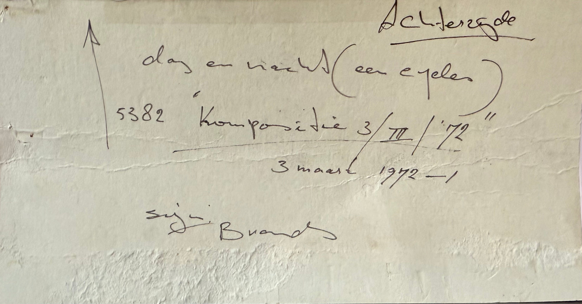 Dag en nacht (een cyclus) Kompositie 1972 (signed 'Brands' lower left, nogmaals gesigneerd, tweemaal gedateerd, titel en genummerd '3 maart 1972 5382' op de achterkant)